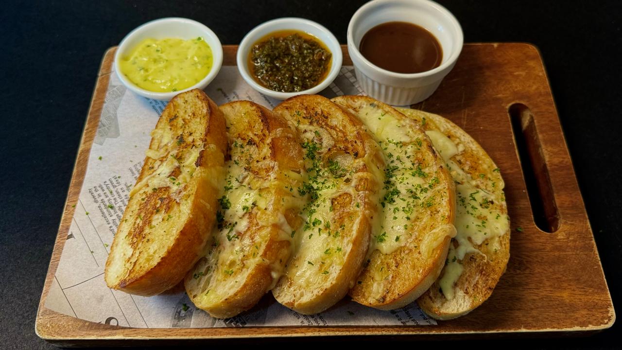 Catch of the day, octopus, prawn, scallop, mussel, seafood sauce, charred lemon, garlic bread.