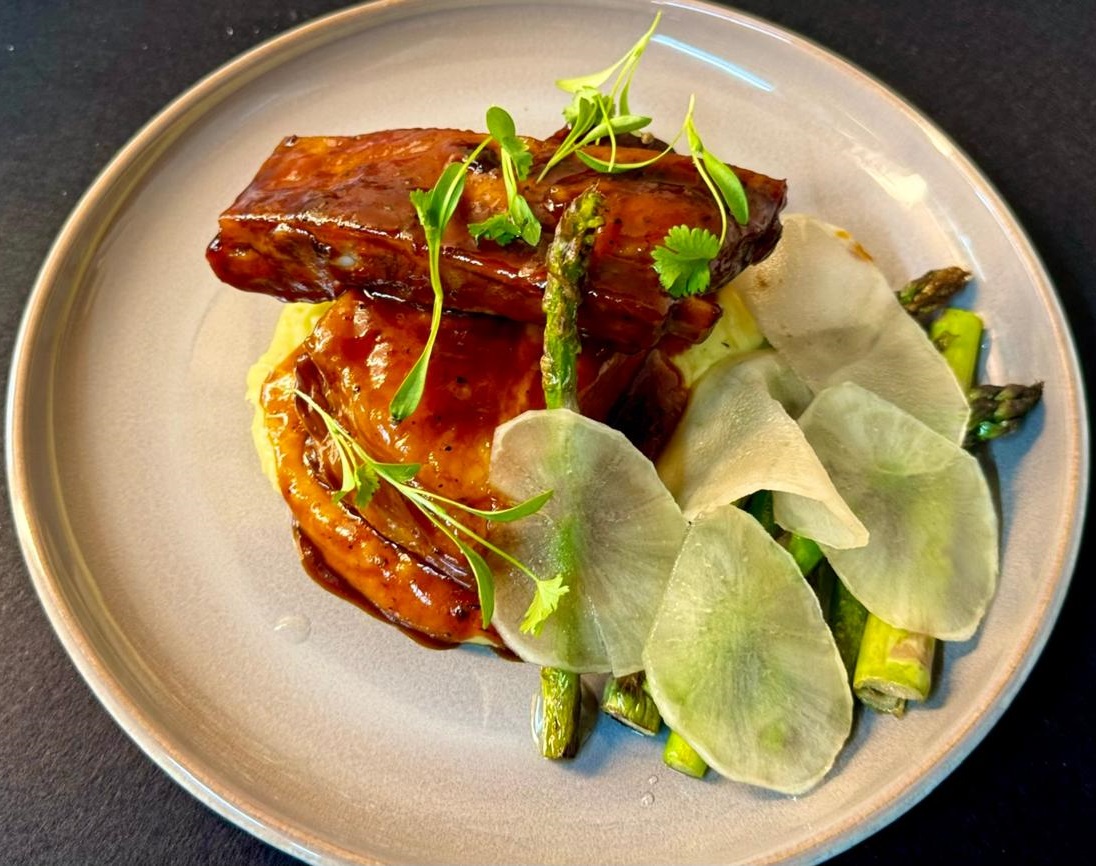 Beurre blanc pasta, sweetcorn ribs, briased short rib.